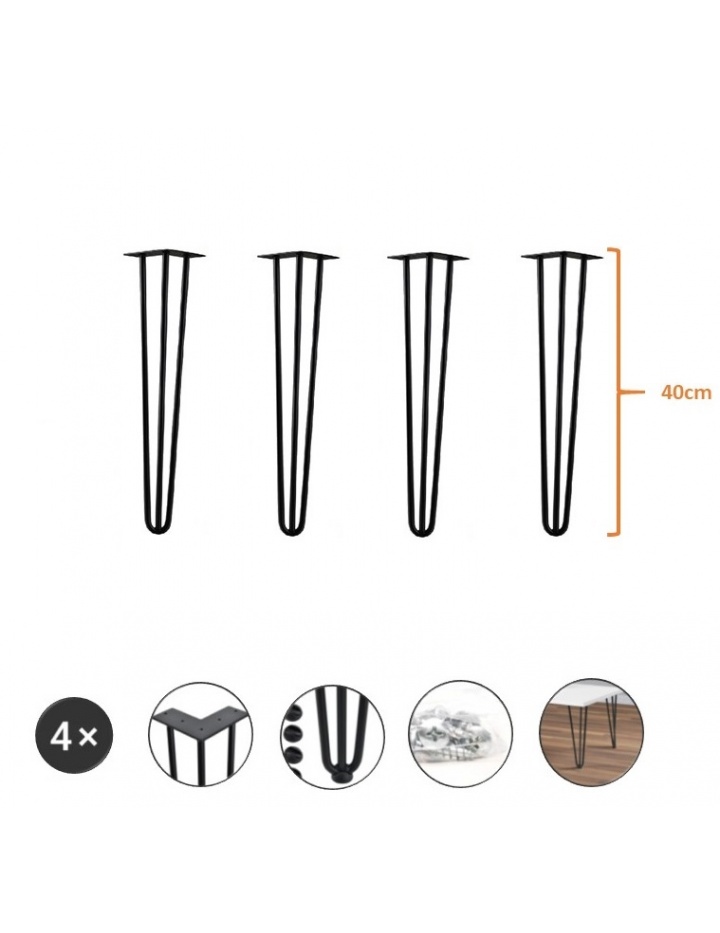 4er Set Hairpin Füße in weiß u. schwarz aus Stahl schwarz höhe 40 cm
