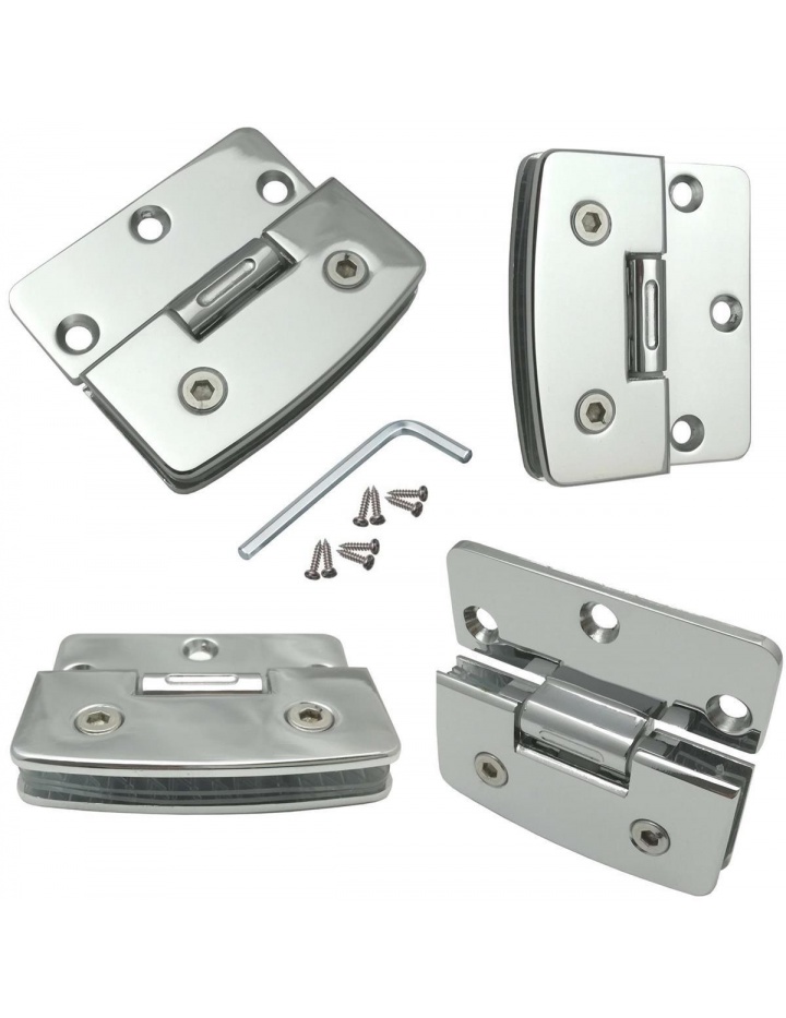 4x Glastür-Scharnier, Schrauben, Dübel, Sechskantschlüssel