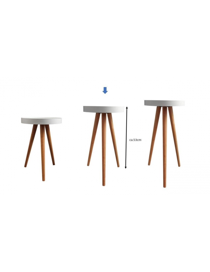 Das moderne Design macht aus diesen Tischen ganz besondere Deko-Elemente, Die Beine sind aus massivem Holz, welches für Klasse sorgt. Lieferumfang: 3-er Set (3x Bestelltisch höhe ca. 59cm, 53cm und 47cm) oder