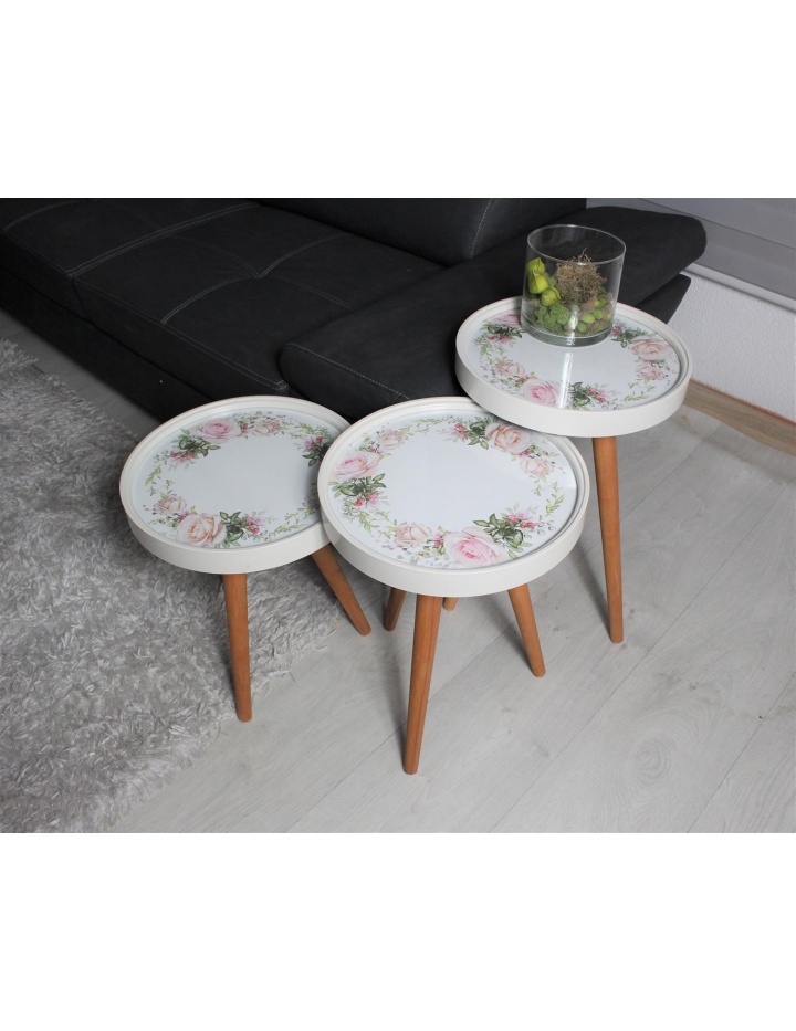 Das moderne Design macht aus diesen Tischen ganz besondere Deko-Elemente, Die Beine sind aus massivem Holz, welches für Klasse sorgt. Lieferumfang: 3-er Set (3x Bestelltisch höhe ca. 59cm, 53cm und 47cm) oder