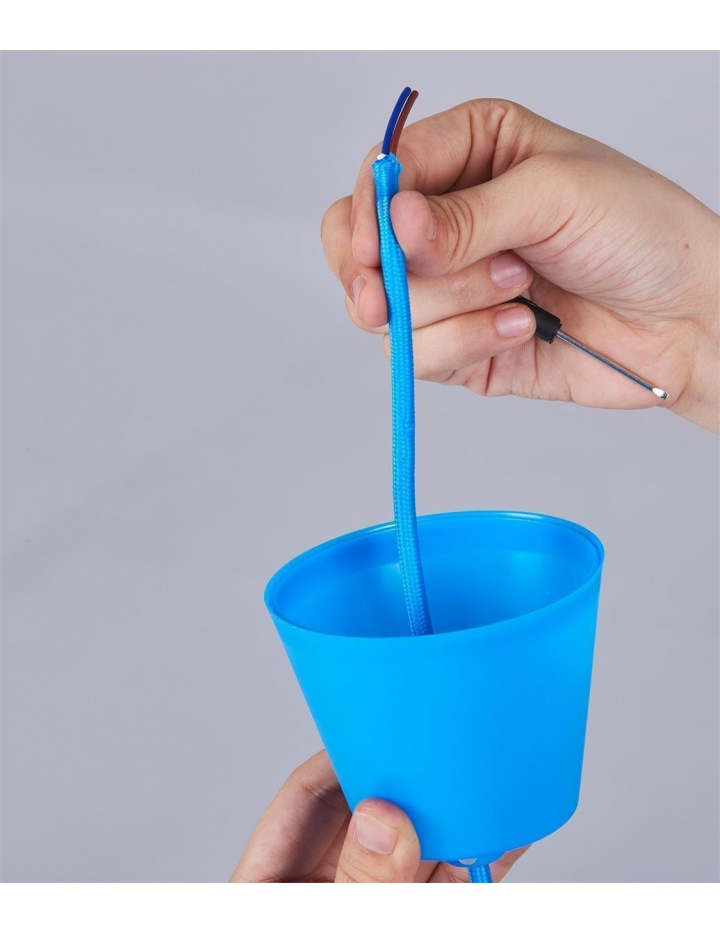 Pendelleuchte aus Kunststoff in der Farbe weiß, schwarz, blau und pink
