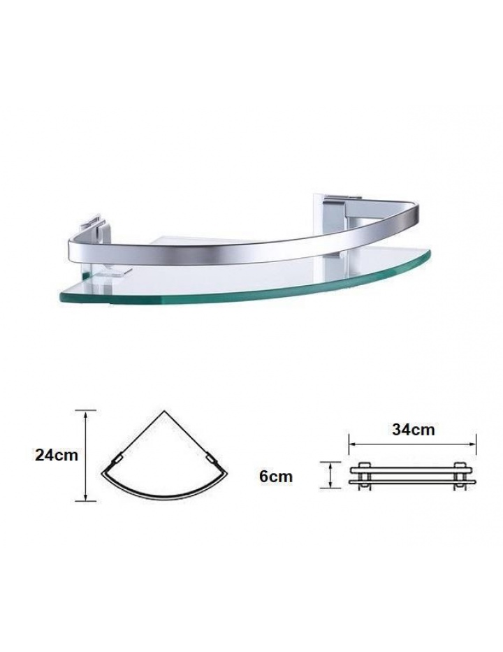 Wir bieten Ihnen ein Eckregal aus Glas für Ihr Bad.
