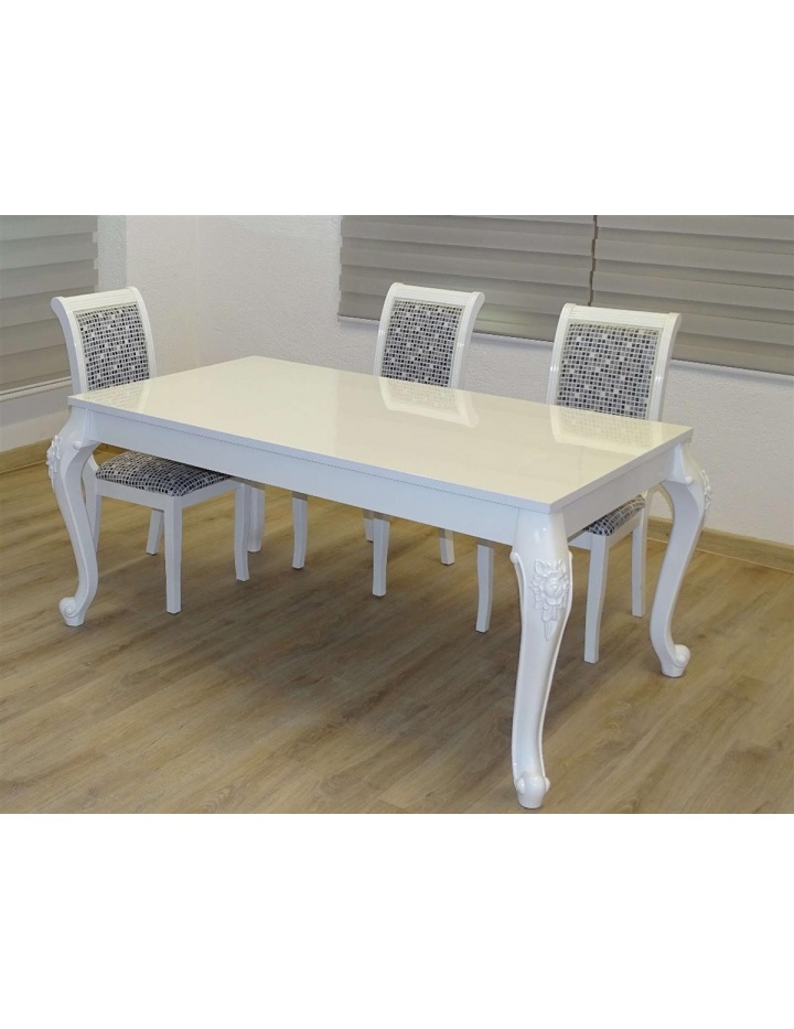 Tischbeine Hochglanz weiß lackiert, gedrechselte Form