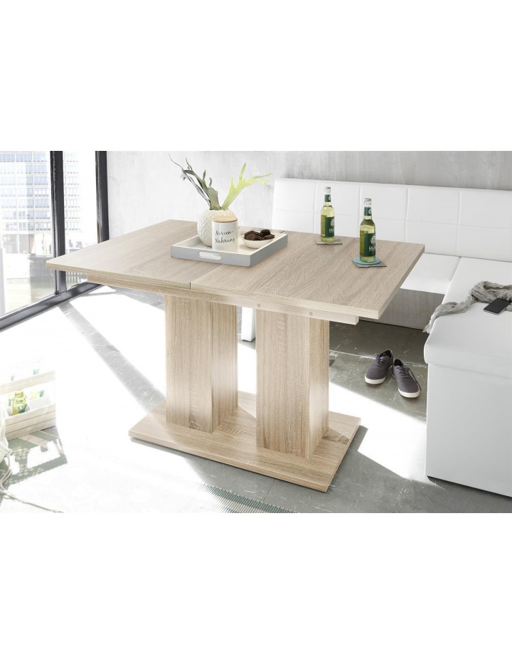 Dieser Esstisch ist ideal für Sie, wenn Sie eine Vorliebe für Möbelstücke im natürlichen Design haben und Gleichzeizig Platzsparend ist. Der Esstisch besticht durch seine klassische Optik und sorgt für ein gemütliches Ambiente. An diesem verlängerbaren Möbelstück ist bei Familienfestlichkeiten oder anderen Gesellschaften für reichlich Platz gesorgt. Der Esstisch ist die ideale Lösung für Ihren Essbereich!