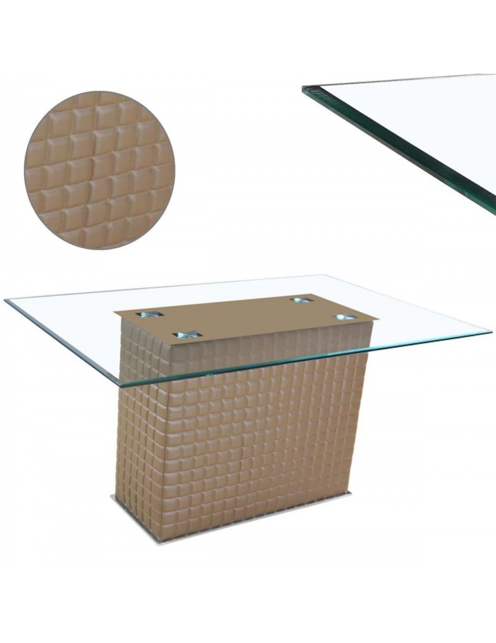 Der Tisch ist schlicht und modern gehalten und kann somit in jeden Wohnstil integriert werden. Der Gestell besteht aus stabilem Holz und ist mit kariertem schwarzem Kunstleder überzogen durch das Säulengestell haben Sie rund um Beinfreiheit . Die Tischplatte bestehen aus Sicherheitsglas in 10 mm Stärke.