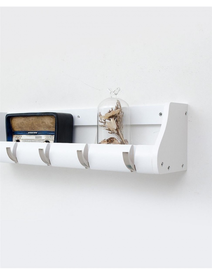 Der Artikel ist aus massivem Bambus gefertigt. Er hat 4 Metall Haken zum ausklappen an denen Kleidung, Accessoires, Handtücher etc. aufgehangen werden können. Zusätzlich bietet diese Garderobenleiste noch eine Ablagemöglichkeit für mehr Stauraum. Egal ob für Geschäft - Büro oder für ihr eigenes Heim, die Garderobenleiste schafft Ordnung. Die Garderobenleiste ist weiss lackiert. Wir verwenden ausschließlich Lacke auf wässriger Basis die den Anforderungen von Lacken für Kindermöbel ( DIN EN 71-3 ) entsprechen. Wir haben uns bewusst für den Rohstoff Bambus entschieden. Bambus gilt als einer der am schnellsten nachwachsenden Rohstoffe dieser Erde. Bambus kann schon nach ca. 3 Jahren das erste Mal geerntet werden. Im Gegensatz zu jungen Bäumen aus angelegten Plantagen und majestätischen Riesen aus Urwäldern, stirbt Bambus nach dem fällen nicht ab, sondern regeneriert sich selber. Zudem ist Bambus härter als Eiche, Buche, Ahorn oder Birke um nur ein paar Beispiele zu nennen. Über viele Jahre hinweg kann dieser unglaubliche Rohstoff geerntet werden und zu ganz besonders umweltfreundlichen Möbeln verarbeitet werden. Selbst die bei der Produktion anfallenden Abfälle aus Bambus werden wiederverwertet. Unser Bambus ist selbstverständlich FSC zertifiziert. Eine Entscheidung für ein Möbel aus Bambus ist auch eine Entscheidung für unsere Umwelt. Technische Daten: Breite: ca. 51 cm Tiefe: ca. 13,5 cm Netto Gewicht ca. 2 KG