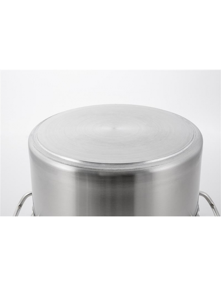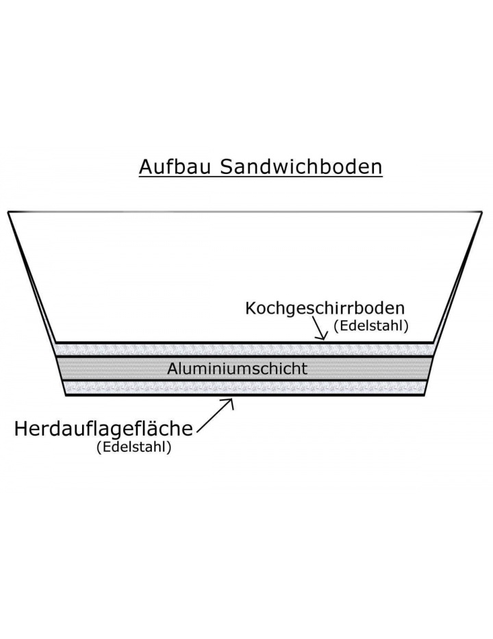 Sandwichboden mit eingearbeiteter ferromagnetischer Edelstahlplatte für ideale Hitzeverteilung und somit geeignet für alle Herd arten auch Induktion