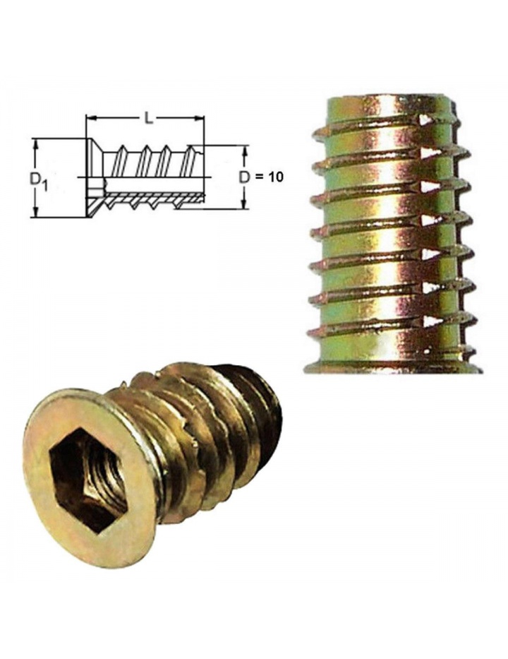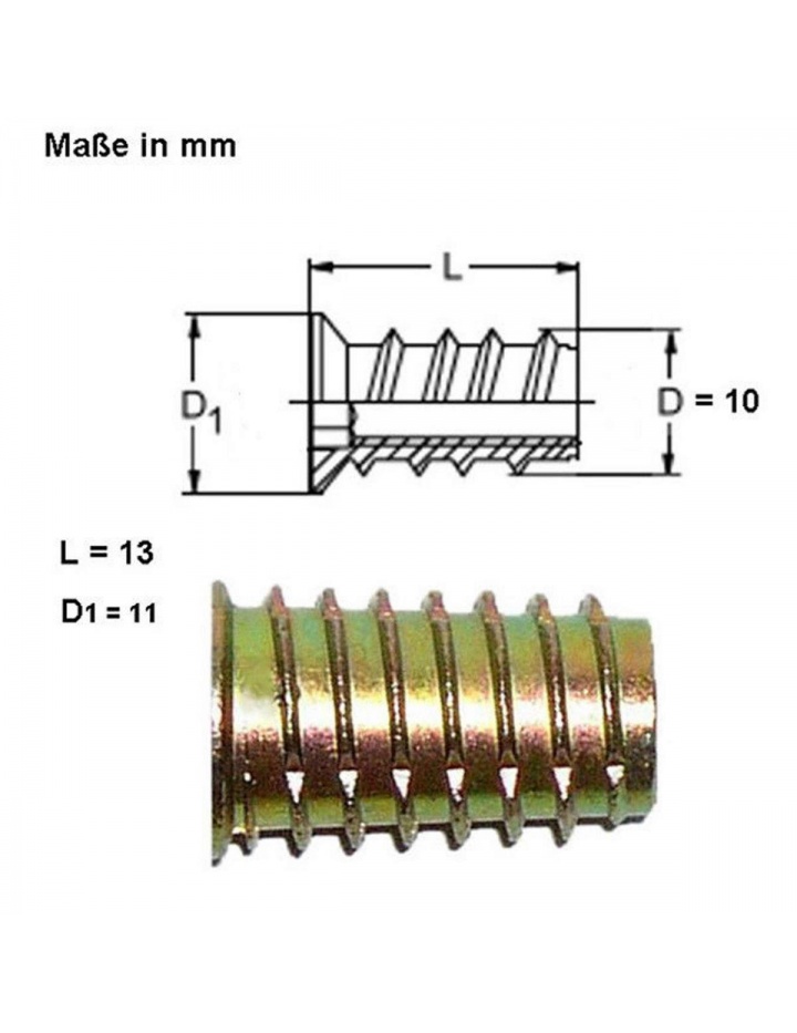 Mit diesen Muffen können Sie diverse Holzteile mit Hilfe von Gewindestangen verbinden. Das Eindrehen in den Werkstoff (Holz) erfolgt komfortabel über den Innensechskant.
