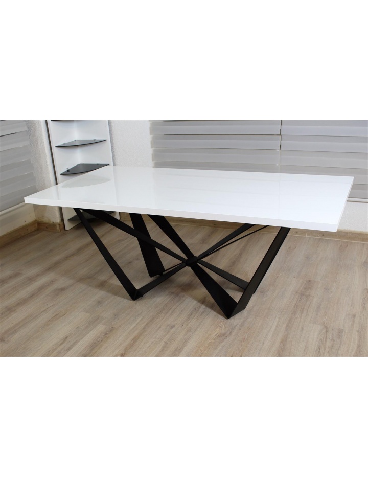 Ihres Ess- oder Ihres Wohnzimmers werden. Dank seiner 3,5cm starken und robusten Tischplatte aus Kratzfestem Lack ist dieser Tisch besonders ausdrucksstark. Das Untergestell wiederum ist dank seiner ausgeklügelten Formgebung sowohl höchst stabil, als auch filigran und wunderschön anzuschauen. Die Pulverbeschichtung in schwarz verleiht das Tischgestell ein Industriellen Design.