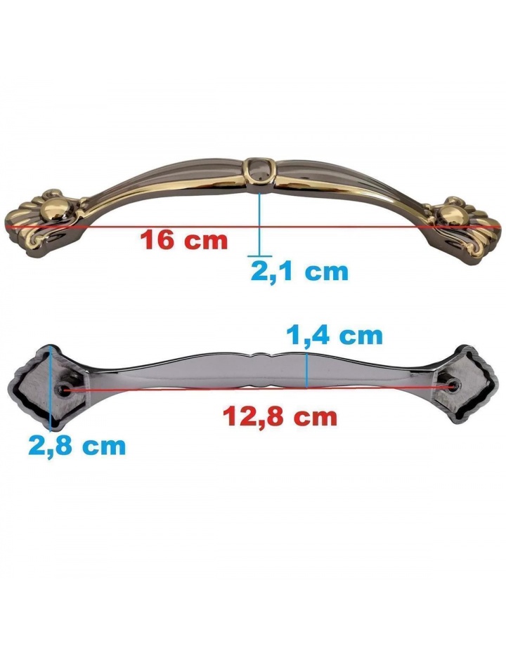 1 Stück Hochwertiger MöbelgriffAus Metall, Farbe: Grau-GoldDetaillierte Maße bitte Skizze entnehmenExklusives Design im Antik-/Retro-LookPassende Schrauben im Angebot enthalten