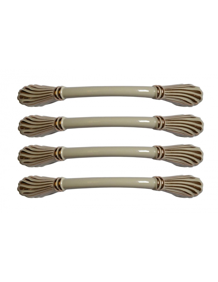 4x Möbelgriffe aus Metall, weiß mit goldfarbenem Dekor