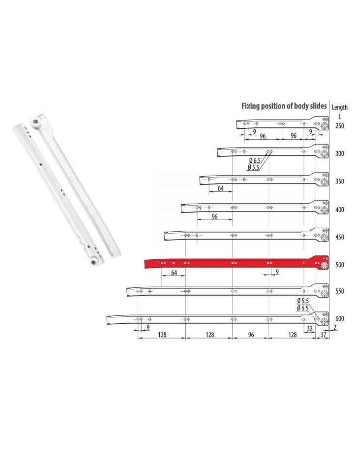 1 Paar Schubladenschienen