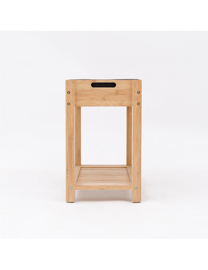 Die Sitzbank ist aus massiven Bambus gefertigt. Unter der Sitzfläche verbirgt sich ein seitlicher Schubkasten zur Aufnahme von Kleinteilen. Abgerundet wird die Sitzbank durch ein schickes Sitzkissen. Der Rahmen ist Klar lackiert. Wir verwenden ausschließlich Lacke auf wässriger Basis die den Anforderungen von Lacken für Kindermöbel ( DIN EN 71-3 ) entsprechen. Die Sitzbank ist als Multi Talent zu bewerten und lässt sich sowohl im Wohn-Essbereich wie auch im Kinderzimmer oder als Möbel im Flur/Dielenbereich einsetzen. Unsere Produkte sind natürlich FSC zertifiziert. Wir haben uns bewusst für den Rohstoff Bambus entschieden. Bambus gilt als einer der am schnellsten nachwachsenden Rohstoffe. Bambus kann schon nach ca. 3 Jahren das erste Mal geerntet werden. Im Gegensatz zu jungen Bäumen aus angelegten Plantagen und majestätischen Riesen aus Urwäldern, stirbt Bambus nach dem fällen nicht ab, sondern regeneriert sich selber. Zudem ist Bambus härter als Eiche, Buche, Ahorn oder Birke um nur ein paar Beispiele zu nennen. Über viele Jahre hinweg kann dieser unglaubliche Rohstoff geerntet werden und zu ganz besonders umweltfreundlichen Möbeln verarbeitet werden. Selbst die bei der Produktion anfallenden Abfälle aus Bambus werden wiederverwertet. Eine Entscheidung für ein Möbel aus Bambus ist auch eine Entscheidung für unsere Umwelt. Technische Daten: Der Artikel wird zerlegt geliefert. Eine ausführliche Montageanleitung ist dem Artikel beigelegt.