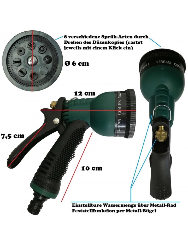 Wasserdüse mit 8 verschiedenen Sprüh-Arten