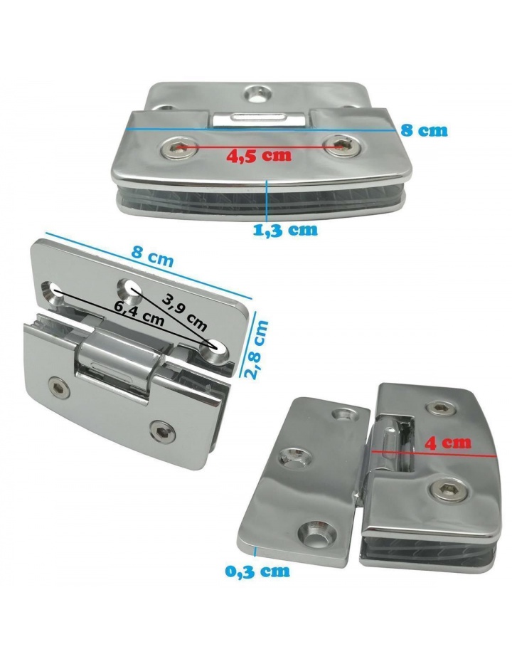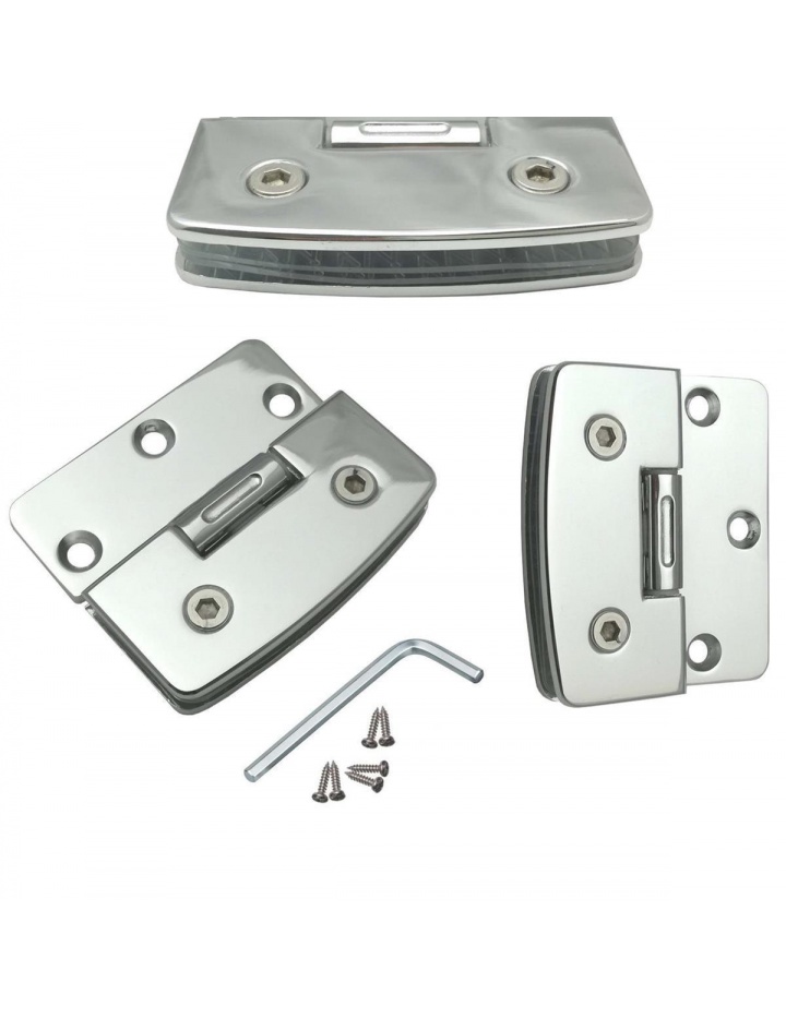 2x Glastür-Scharnier, Schrauben, Dübel, Sechskantschlüssel