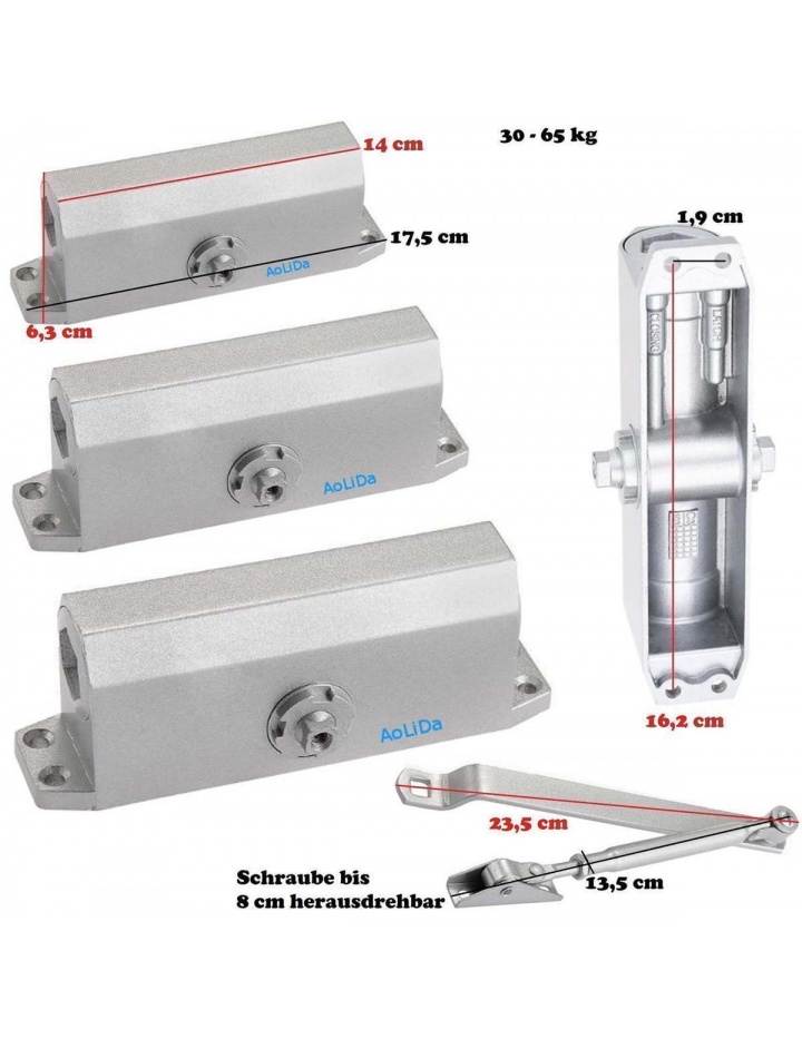 - Hydraulische Türschließer in 3 Größen (oben wählen)