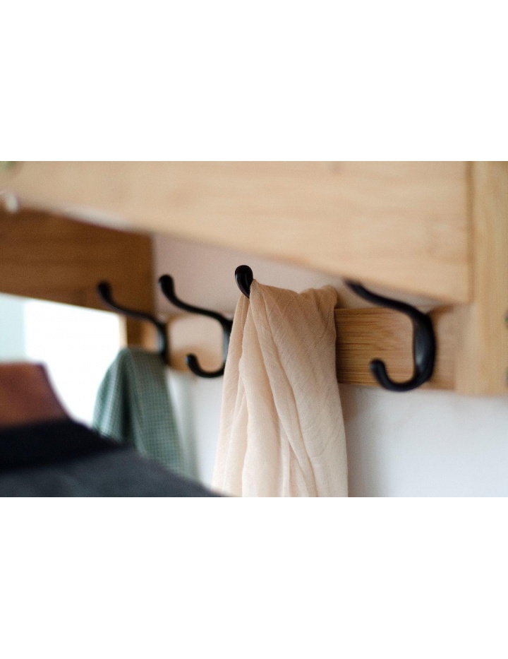 Die Kleider Doppelhaken sind in der Farbe schwarz gehalten. Wir verwenden ausschließlich Lacke auf wässriger Basis die den Anforderungen von Lacken für Kindermöbel ( DIN EN 71-3 ) entsprechen.
